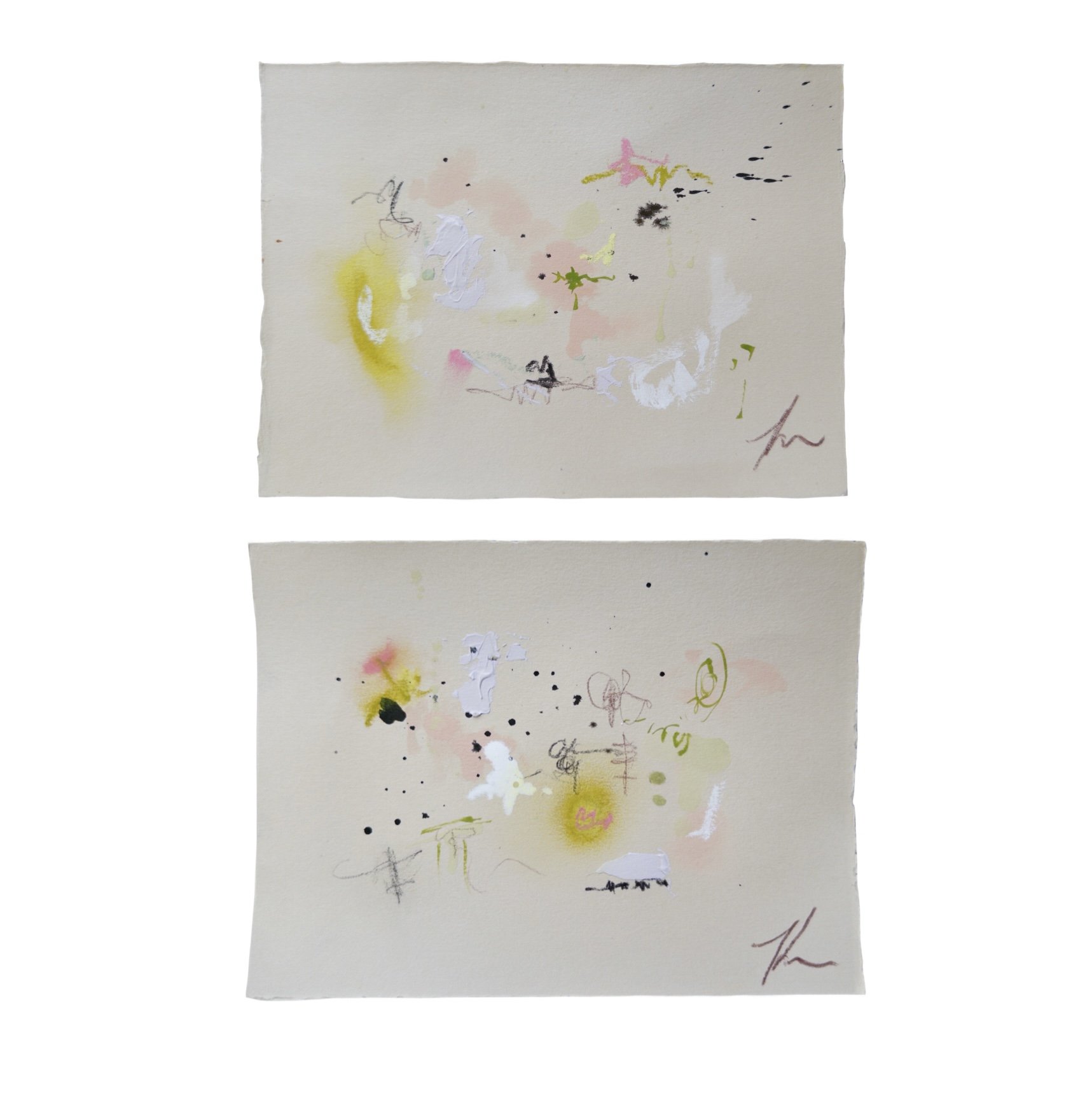 Acrylic ink, charcoal, French pastel, and acrylic on (2) 7.5x5.5” heavy weight watercolor paper