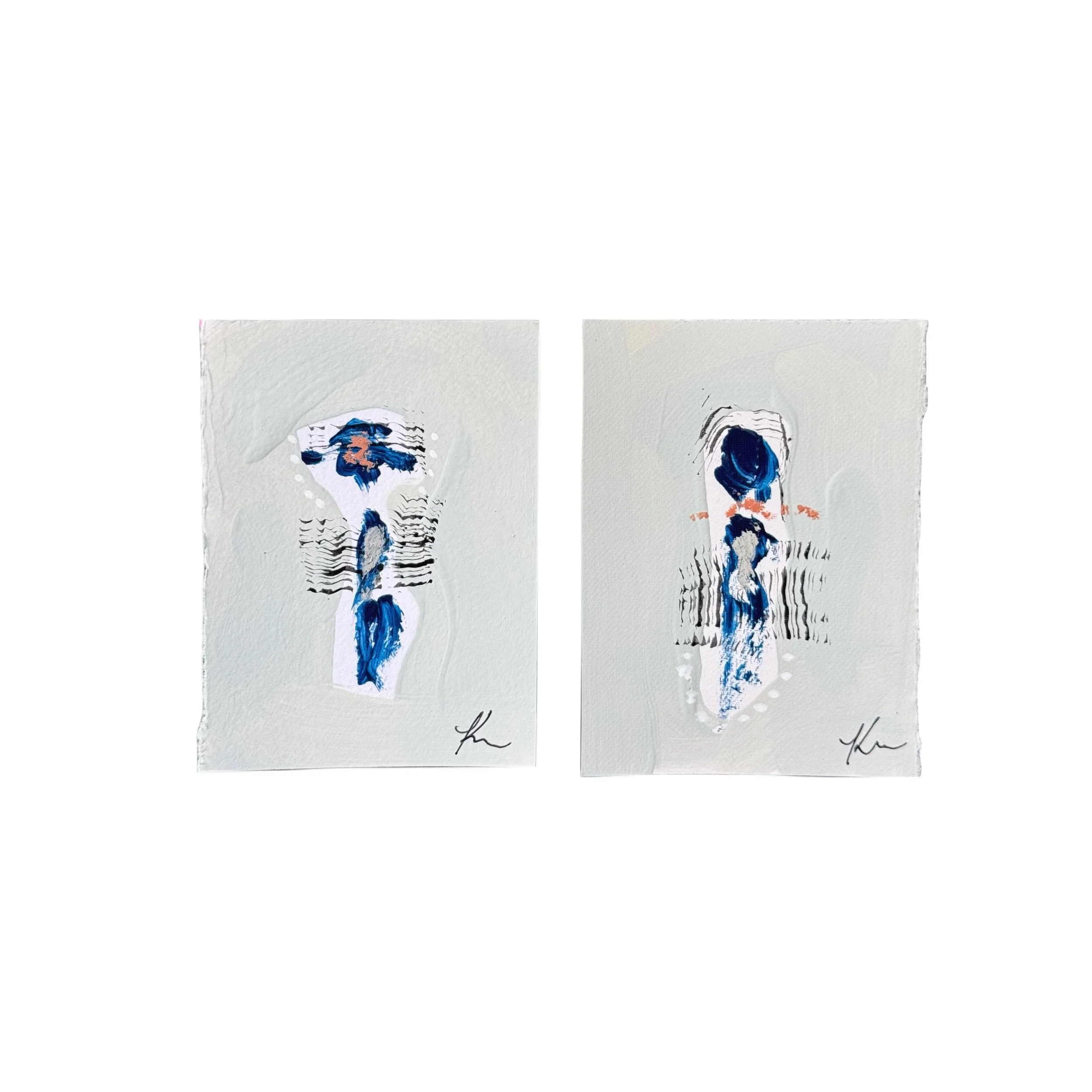 acrylic, ink, oil pastel, and charcoal on heavy hand torn watercolor paper. All personnage minis vary from 3”-5” individually. Size may vary.